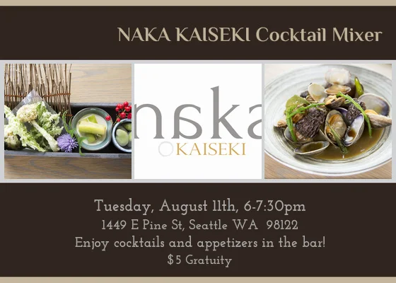 Lissa Gruman, with Gruman & Nicoll Public Relations invites the Concierge Guild of Seattle, the Seattle Hotel Concierge Assn and Visit to Seattle to a cocktail mixer! Raised in the Seattle area, Chef Shota Nakajima received his culinary training at one of Japan’s most prestigious cooking schools in Osaka, followed by an apprenticeship with a Michelin Star chef. Naka, located on Capitol Hill at 15th & Pine, offers contemporary cuisine inspired by Japanese kaiseki- a multi-course progression and one Japan’s most traditional meals, balancing flavor, texture, appearance, and food color. Naka as a focus on craft cocktails led by Nik Virrey, who brings his mastering of liquid libations to Naka’s bar from nationally recognized Seattle bars, Liberty and Tavern Law. Front of house veteran, Jason Lock, has intimately curated a wine list focused on unique wines and winemakers from around the globe, but with a distinct focus on Washington, Oregon and California. Please bring $5 gratuity and RSVP by 8/10 if possible. Hope to see you there!