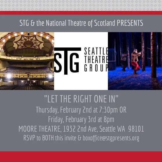 You & a guest are invited to be our guest as the National Theatre of Scotland presents "Let the Right One In", a truly rare piece of theatre, an enchanting, brutal vampire myth and a coming-of-age love story.